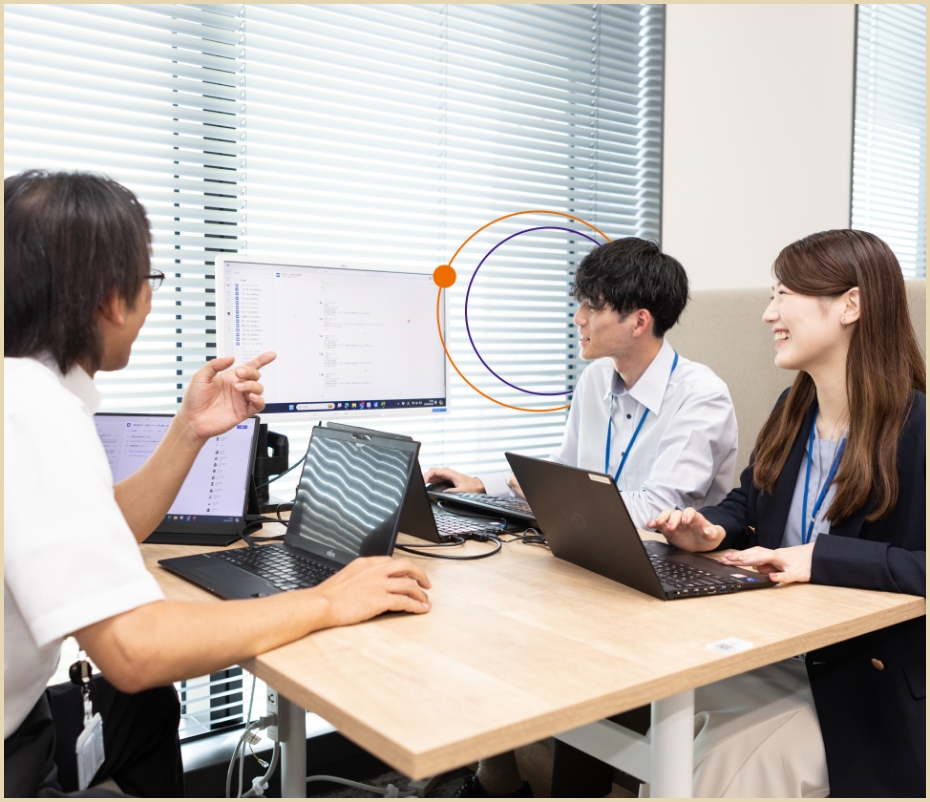 営業と聞くと、どのようなイメージをお持ちですか?当社のシステム営業は、単なる物売りではなく、BtoB、BtoGのビジネス形態の中で、お客様が抱える様々な経営上の課題をITで解決に導いていく、ITコンサルタントとしての役割を担う”専門性”を持った営業です。当社エンジニア他、社内外様々な人と、チームとして仕事を進めつつ、既存のお客様と長期的な信頼関係を築いていきます。また、製品の勉強会や展示会に参加するなど、お客様により良いサービスを提供するための情報収集を行い、お客様の視点に立った課題解決に臨みます。